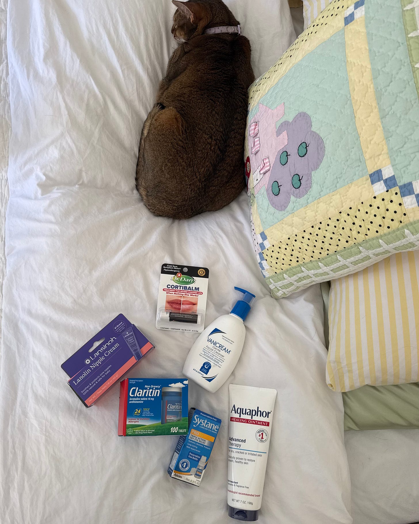 My skincare routine is extremely boring now, but it’s working very well. In the evenings, I wash my face with Vanicream Gentle Wash and moisturize with the Prequel Barrier Therapy Moisturizer.